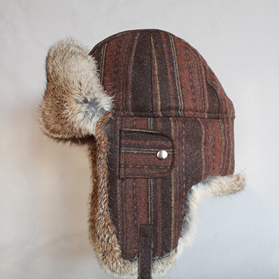 HT-0016 Striped Cloth Trapper Hat with Rabbit Fur